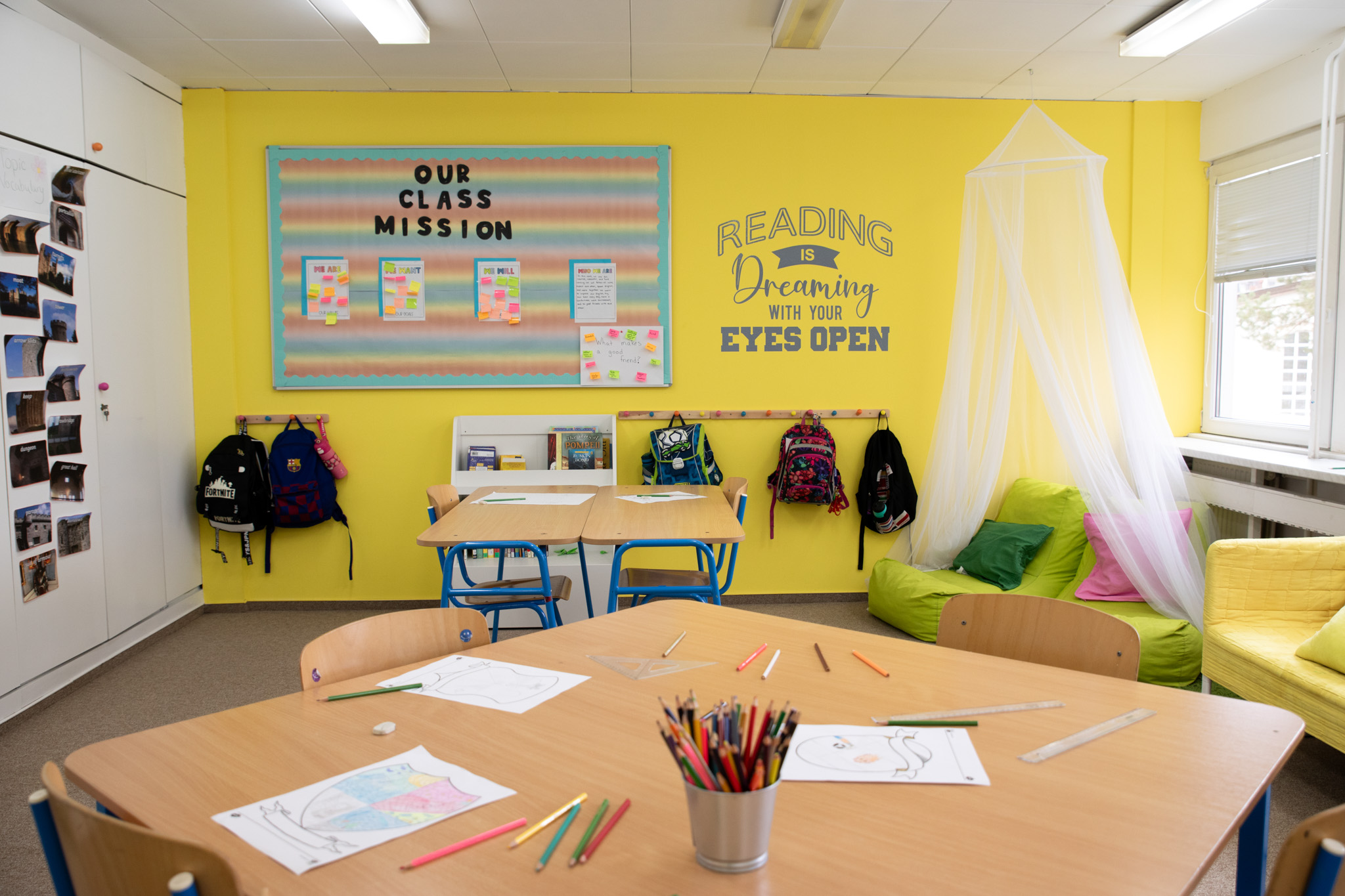 Take a look inside the modern interiors of the English International School of Bratislava. The gallery presents illustrative photographs of classrooms, shared spaces, and school facilities designed to support focus, creativity, and a welcoming learning atmosphere. The school’s interior combines functionality, aesthetics, and comfort in line with international standards.